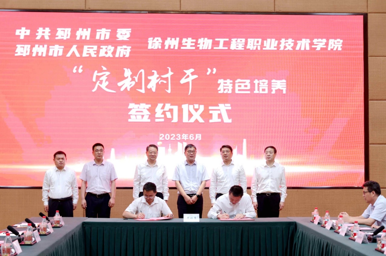 为贯彻落实《中共中央、国务院关于做好2023年全面推进乡村振兴重点工作的意见》,培养一批农村发展急需、知识水平高、专业性强、留得住、扎下根、具有邳州特色的“定制村干”,经友好协商,中共邳州市委、邳州市人民政府委托我校开展“定制村干”特色培养。签约仪式于2023年6月30日上午在邳州市政府招待所多功能厅举行。我校党委副书记、校长徐锋,党委委员、副校长赵虎、强承魁,邳州市委书记曹智,市委副书记、市长王伟,市委副书记韩振松,市委常委、组织部部长杨毅,副市长董国强及双方相关部门负责人参加签约仪式。