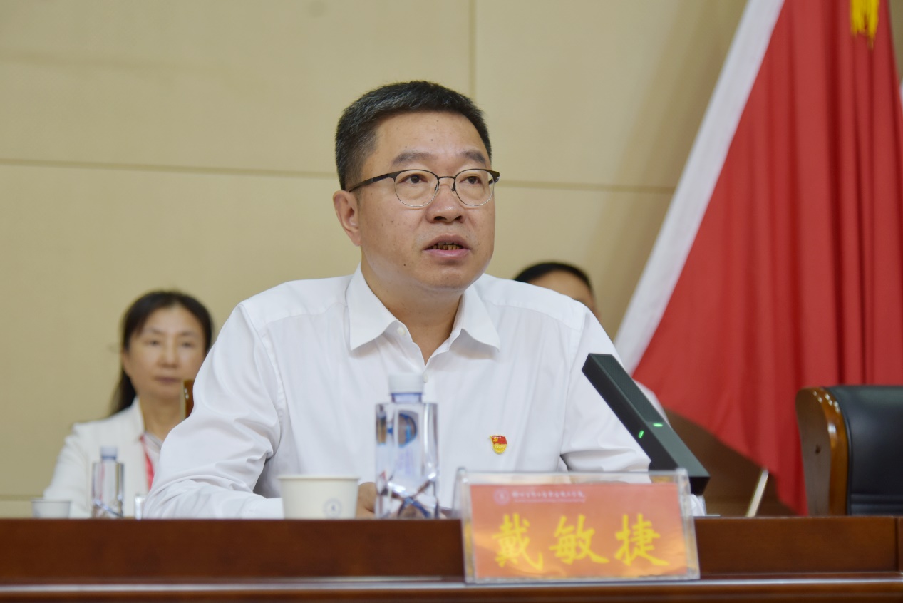 戴敏捷在讲话中代表市委对大会的召开表示热烈的祝贺,对我校第一次党员代表大会以来取得的成绩以及为徐州经济社会发展作出的贡献给予了充分肯定对学校即将产生的新一届党委班子提出四点希望和要求:一要持续深入学习贯彻习近平新时代中国特色社会主义思想,精心组织开展好第二批主题教育,确保学校各项事业始终沿着正确方向阔步前进。二要牢牢把握立德树人根本任务,全面贯彻党的教育方针,坚持社会主义办学方向,牢记“为党育人、为国育才”初心使命,全力培养更多有理想、敢担当、能吃苦、肯奋斗的新时代好青年。三要紧紧围绕343创新产业集群发展需求,主动对接生物医药和大健康产业,为淮海经济区中心城市建设贡献更多智慧与更大力量。四要着力优化完善学校党组织设置,持续加强领导班子和干部队伍建设,加大优秀年轻干部培养选拔力度。严格落实中央八项规定精神,着力营造风清气正、干事创业的良好政治生态。