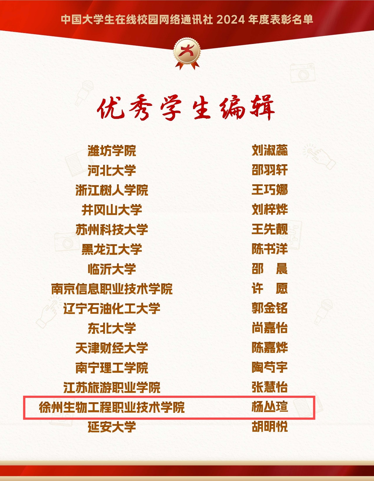 近日,教育部中国大学生在线公布了全国校园网络通讯站及校园行活动2024年度表彰名单。我校荣获“全国优秀校园网络通讯站”,党委宣传部王晴老师获得“优秀指导教师”,校园网络通讯站杨丛瑄同学荣获“优秀学生编辑”,通讯站文章《校园行|军训风采,热血青春》入选“年度优秀内容榜单”。这是我校连续第3年受教育部中国大学生在线表彰,也是我校持续加强网络思想政治教育,推进“三全育人”工作中取得的又一重要成果。